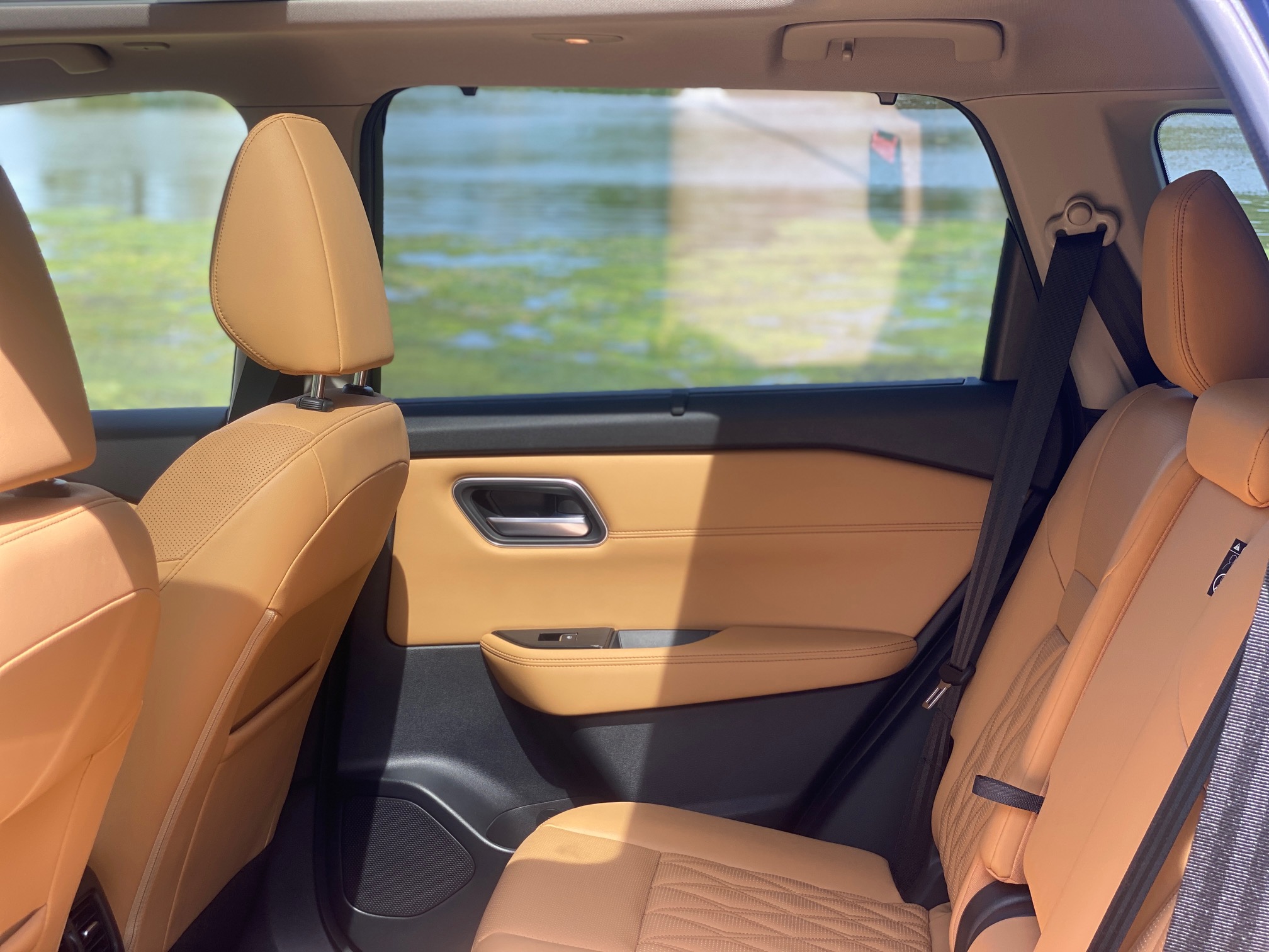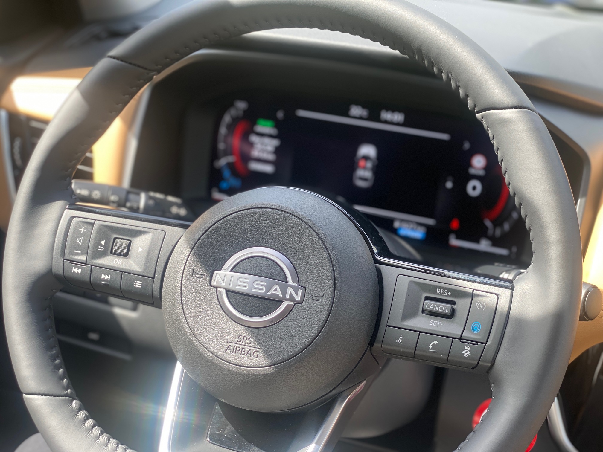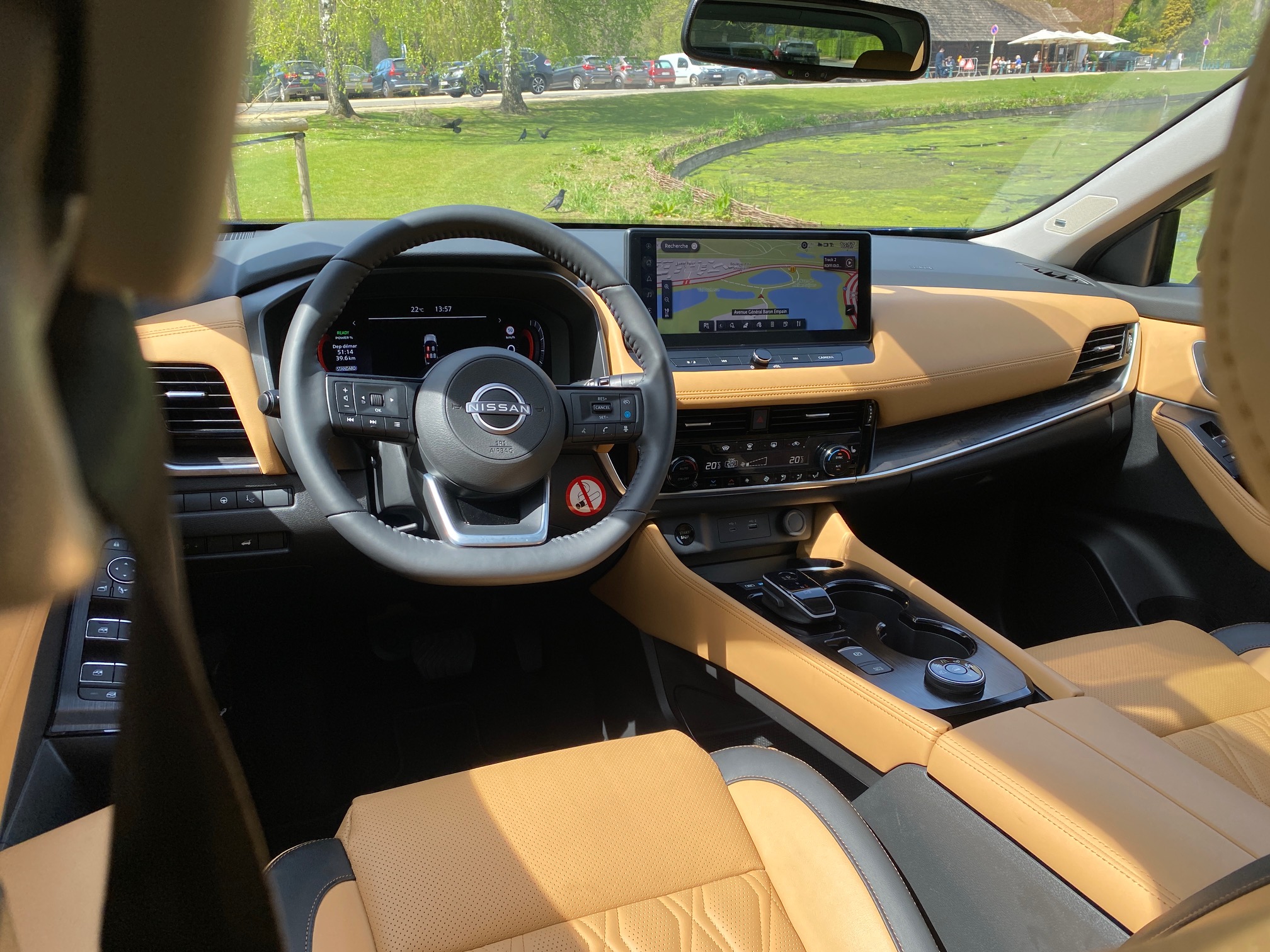 Une fois installé derrière le volant, X-Trail offre un sentiment de qualité et de robustesse. Sur la version plus renchérie, on peut constater un revêtement en cuir sur le tableau de bord. On y retrouve deux écrans imposants de 12,3’’, l’un derrière le volant qui permet un affichage de la carte, l’autre au centre de la console qui sert au système multimédia. Un gros écran optionnel de 10,8’’ apparaît devant les yeux du conducteur avec l’affichage tête haute. Cet SUV propose des sièges accueillants, offrant de surcroît au conducteur une position privilégiée de conduite ainsi qu’une une vision dégagée de la route.