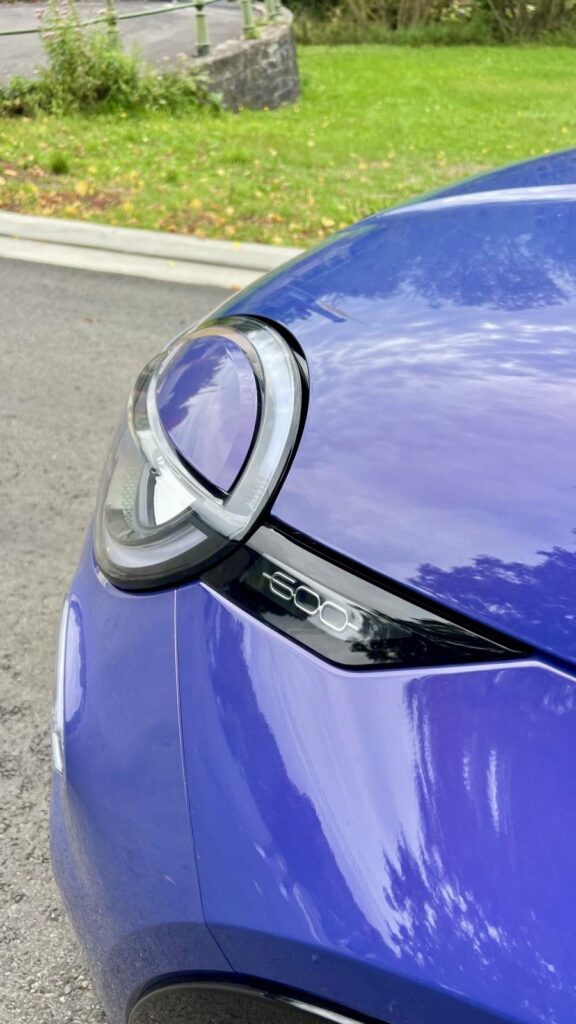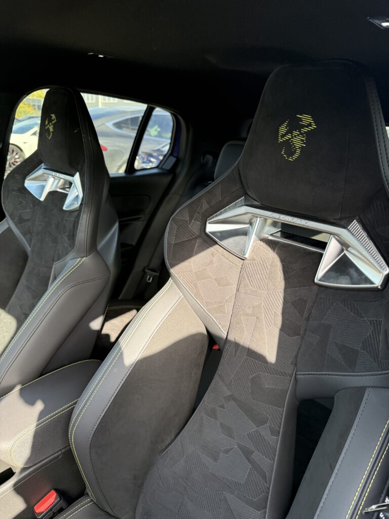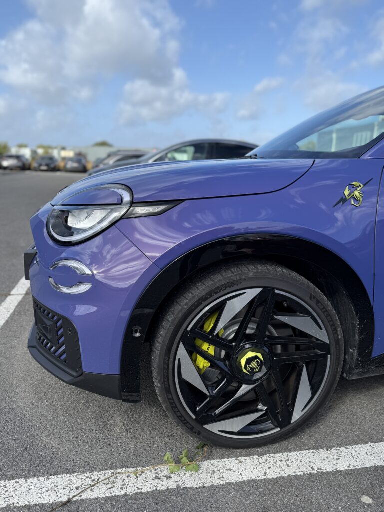 D’un simple coup d’œil, la 600e Scorpionissima affiche sa singularité. Plus large, plus basse et plus agressive que sa sœur Fiat, elle s’habille de boucliers élargis, de jantes de 20 pouces et d’une teinte exclusive Hypnotic Purple, signature de cette première série limitée à 1 949 exemplaires. Le logo Abarth revisité trône fièrement sur le capot, tandis que les appendices aérodynamiques accentuent sa prestance. La silhouette compacte, tendue et nerveuse, traduit bien la philosophie de la marque : peu de volume, beaucoup de caractère. À bord, l’ambiance est plus sérieuse que spectaculaire.