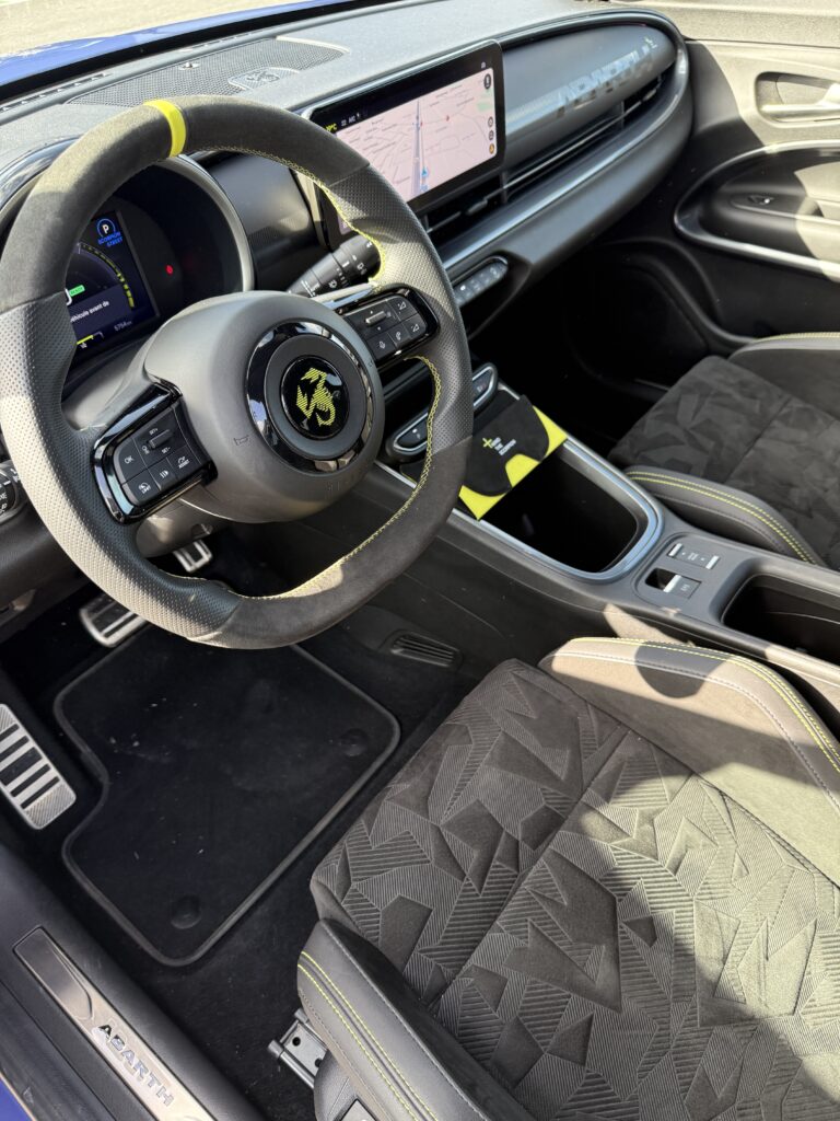 Les sièges sport Sabelt assurent un maintien impeccable, la position de conduite est naturellement basse, et la finition progresse nettement par rapport aux anciennes générations. L’écran central de 10,25 pouces regroupe toutes les fonctions multimédias, mais Abarth a conservé des commandes physiques pour les fonctions essentielles, un choix salué par les amateurs de conduite pure. Sous la robe italienne, la technique surprend : la 600e repose sur la plateforme Perfo-eCMP, retravaillée par Stellantis Motorsport pour offrir une motricité plus précise et une répartition des masses optimisée. Le résultat : un comportement vif, direct, presque joueur, avec une puissance délivrée instantanément grâce à un couple généreux.