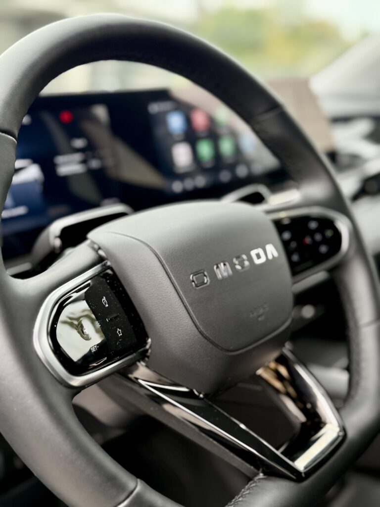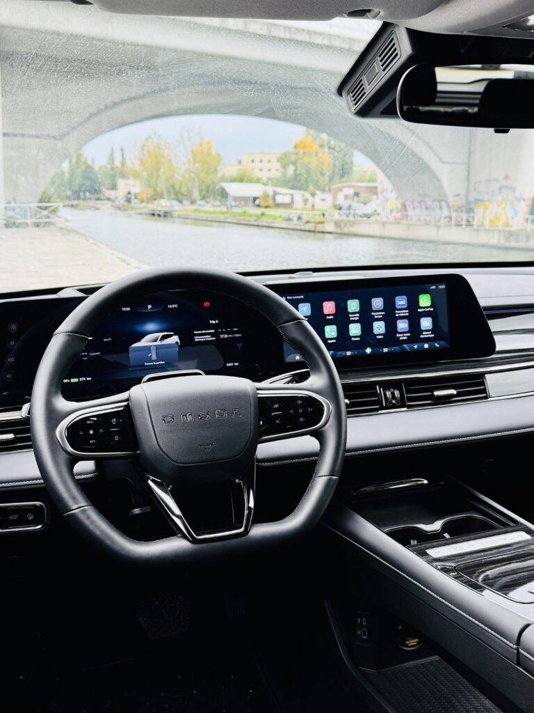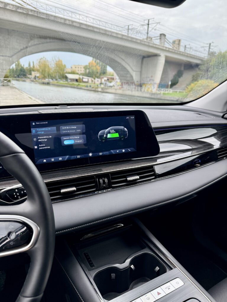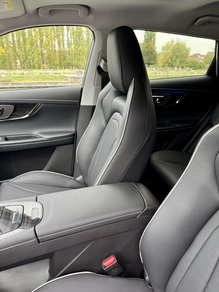 L’habitabilité est bonne pour quatre adultes, excellente pour un usage familial du quotidien. Le coffre est raisonnable, mais pas record l’une des rares concessions de la voiture. Un point ressort cependant : l’effort sur la perception de qualité. Peu de plastiques durs visibles, un design intérieur cohérent, pas d’écrans ajoutés comme des pièces rapportées… Pour une marque nouvelle sur le marché européen, l’exécution force le respect.