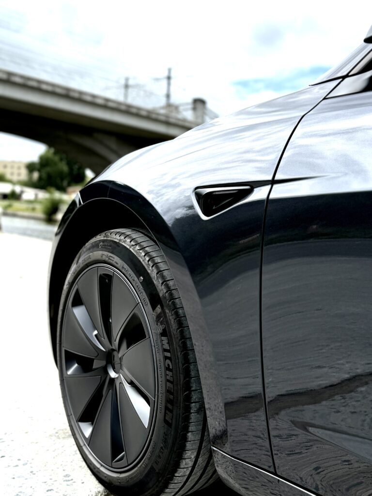Visuellement, Tesla Model 3 n’a pas cherché la rupture, mais l’équilibre. Les lignes s’affinent, le capot plonge davantage, les optiques s’étirent horizontalement avec une signature lumineuse redessinée. L’avant devient plus fluide, moins agressif, et le travail aérodynamique abaisse le coefficient de traînée à 0,219, une prouesse pour une berline de ce gabarit. L’arrière évolue subtilement : nouveau bandeau LED, lettrage Tesla élargi, feux plus épurés. Les nouvelles teintes Ultra Red, Stealth Grey et Quicksilver traduisent cette montée en gamme assumée. L’ensemble respire la sobriété efficace : tout est calibré, ajusté, millimétré. Là où d’autres multiplient les artifices, Tesla préfère la pureté d’une idée : la forme doit suivre la fonction.