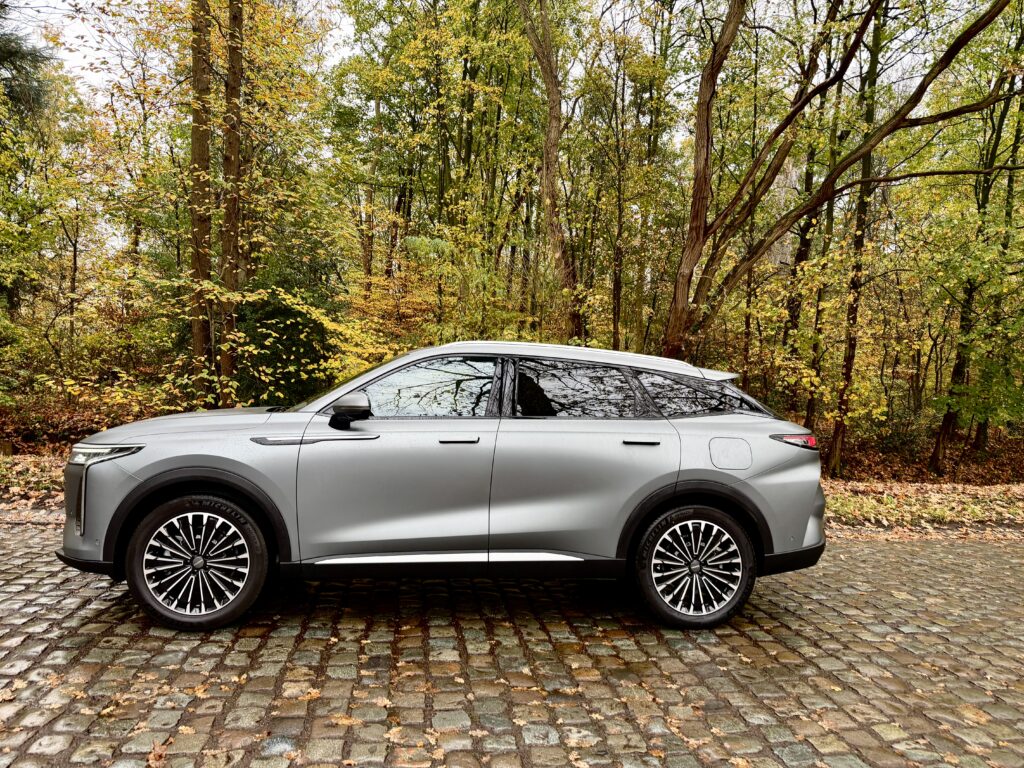 L’Omoda 9 adopte une silhouette dynamique et structurée. La face avant se distingue par une signature lumineuse marquée et une calandre expressive. Les lignes tendues et les volumes sculptés renforcent une impression de robustesse et de modernité. Le profil fluide et l’arrière travaillé contribuent à une présence visuelle forte. L’ensemble ne cherche pas la provocation mais l’assurance, avec une identité clairement assumée.